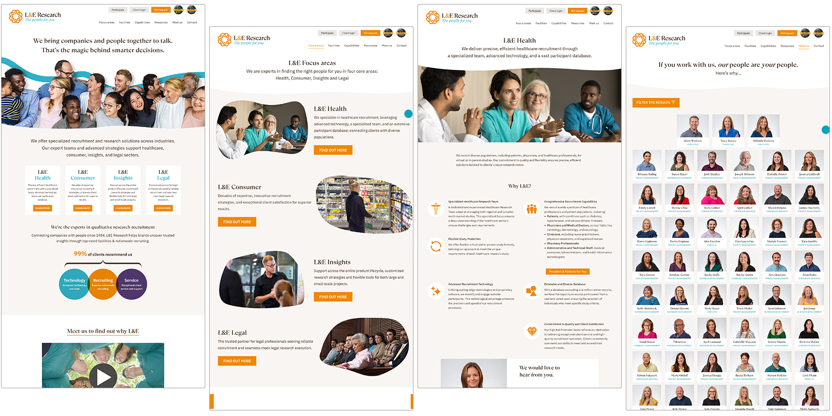 L&E Research, a well establish global market research agency, initially approached us for the maintenace and UI/UX improvements on their sites. Overtime, our design team has created many new digital and print assets for use by the organization as well as providing subtle reworking of the LEresearch and LEopinions websites. Finally, beginning fall of 2022, we were charged to optimizing LEresearch site for improved relevant traffic.